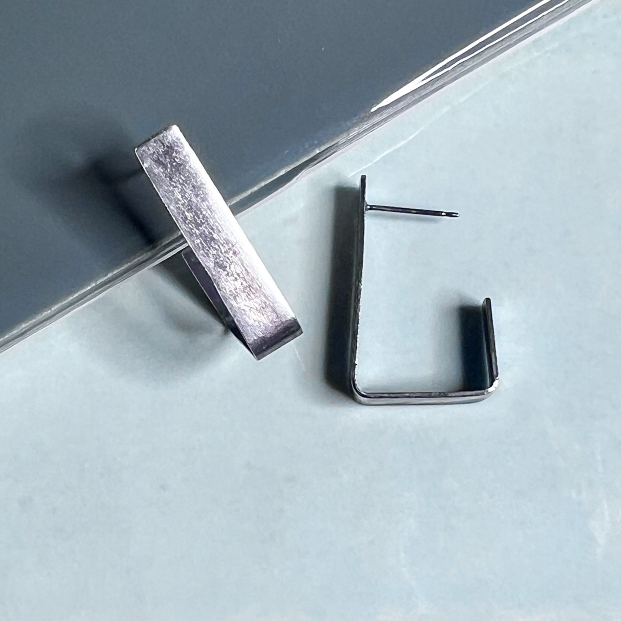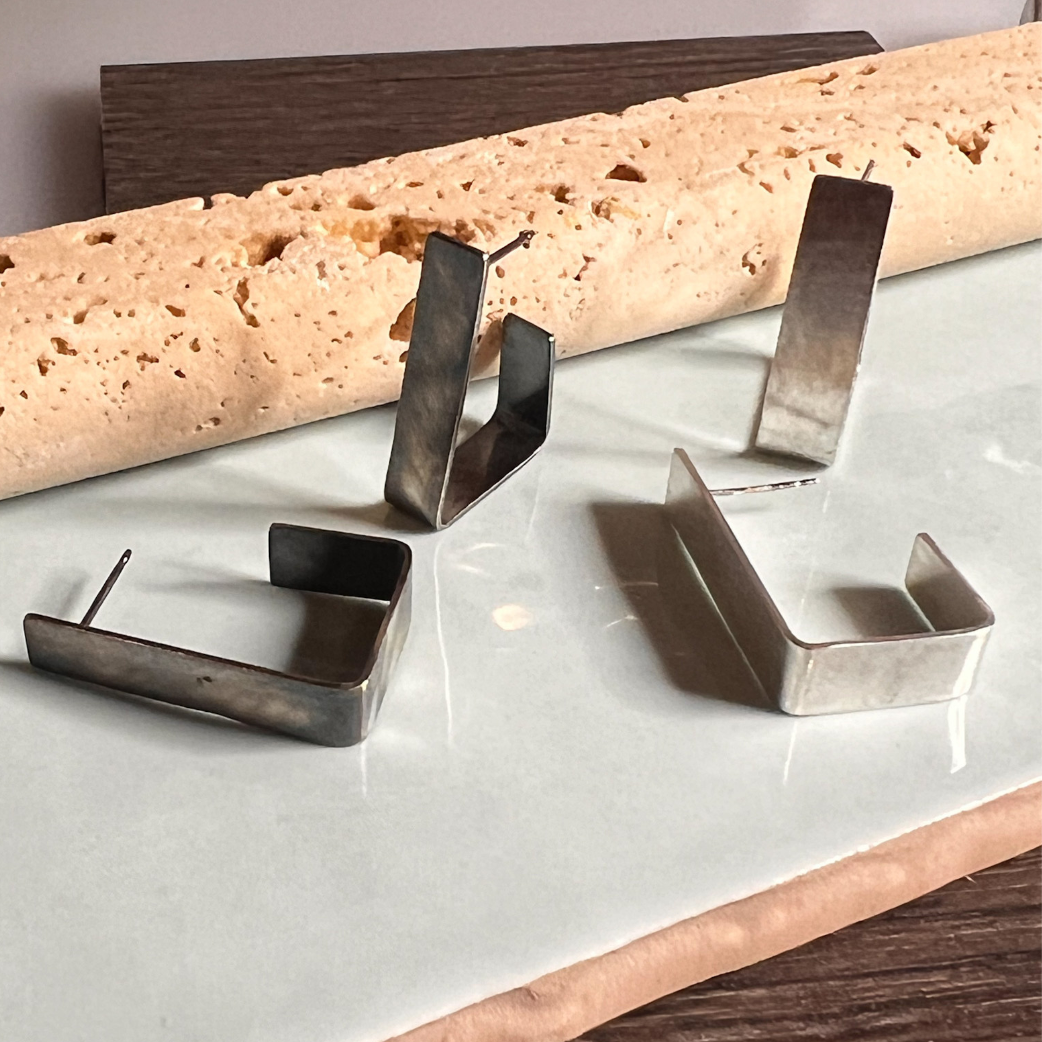 Sleek, bold, and sculptural — the Angular Hoops Sterling Silver Earrings reimagine the classic hoop with a contemporary edge. Hand-forged from genuine .925 sterling silver and finished with a subtle brushed texture, these statement studs bring an effortlessly modern touch to your collection.