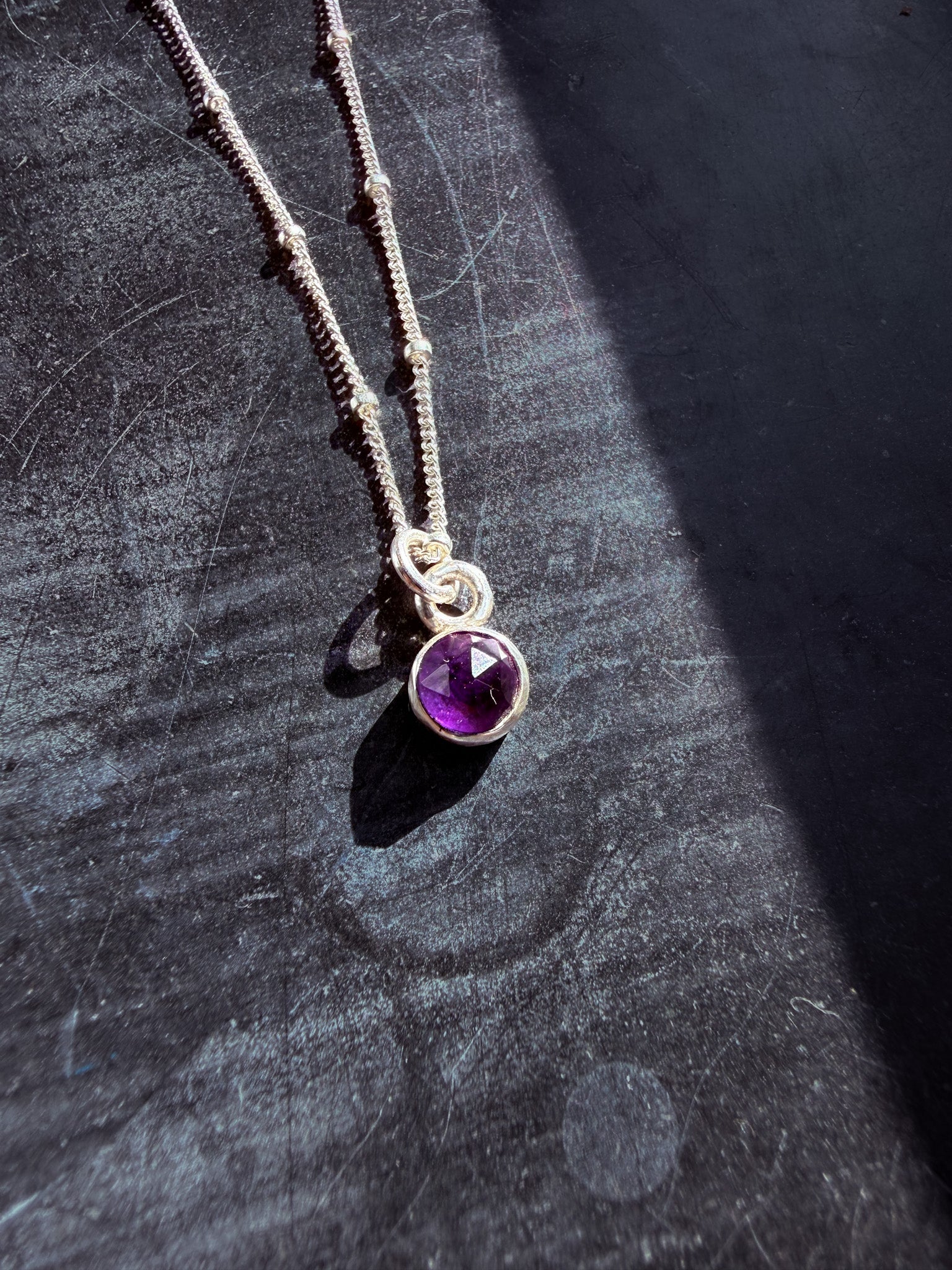 Why You’ll Love It – Genuine 6 mm amethyst gemstone – Handcrafted in small batches for quality and uniqueness – Hypoallergenic, nickel-free sterling silver – Elegant everyday design — perfect for gifting or layering – Handcrafted in Richmond, VA by Mara James